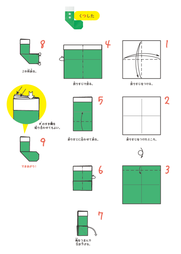 大きな靴下は35㎝角に切った画用紙で折ります。