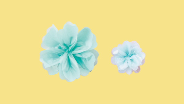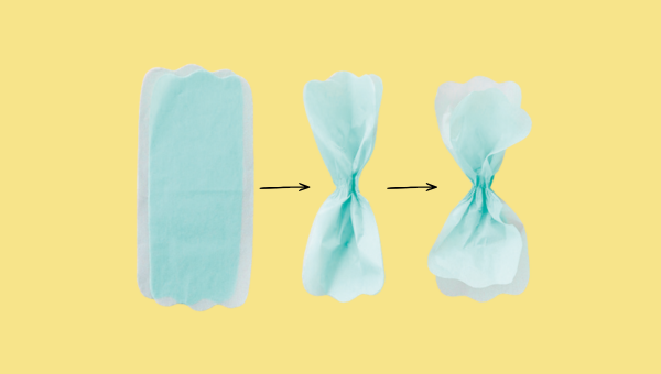 ①薄葉紙(大)を2枚重ねて中央をギュッとつまむ。中央をつまんだまま、花びらを広げる。