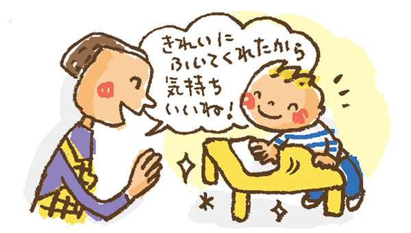 がんばった、よかったポイントを子どもに具体的に伝えましょう。「先生は自分のことをわかってくれている!」と子どもが感じられることがだいじです。保育者自身のうれしい気持ちを伝えると、子どもの心により届きます。
