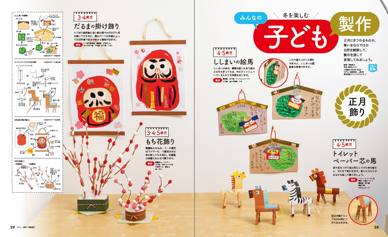 内容紹介 付録 ・「ディズニーキャラクター 2026年カレンダー」 ・「月間指導計画1月・2月」 ・「シアターキット」 ・「きょうはなんのひ?カレンダー1月・2月」 【特集①】 おにコレクション トータルコーディネートでなりきり! 【特集②】年齢別 おひなさまアイデア 【読み物】“Z世代”後輩のトリセツ 0・1・2歳児 ・段ボールを使ったあそび ・わらべうた 人気コーナー ・柴田愛子先生 保育のホンネ ・翼&翔のWARABE-UTA ・シアター:ポカポカ・ハウス ・カツリキのエブリデイうたあそび 「いちごっぴ」「ハンカチフィーバー」