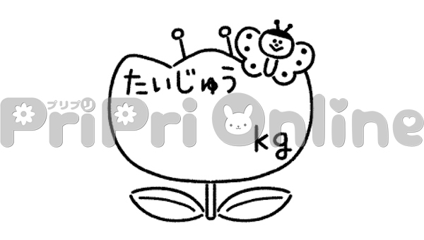 チューリップと蝶と「たいじゅう」の飾り文字(白黒)