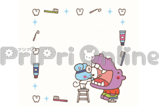 歯科検診をする動物たちの飾り枠(白黒)