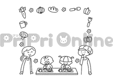 割烹着姿の動物たちの飾り罫(白黒)