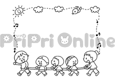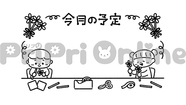 花を作る子どもたちと「今月の予定」の飾り枠(白黒)