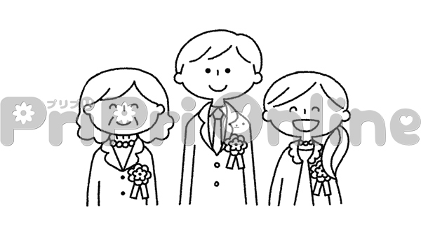 卒園式の保育者のイラスト(白黒)