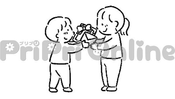 保護者に感謝の手紙を渡す子どものイラスト(白黒)