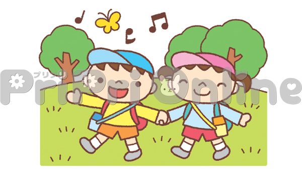 手を繋いで歩く子どもたちのイラスト