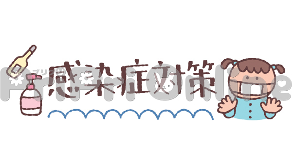 マスクをした子どもと「感染症対策」の飾り文字