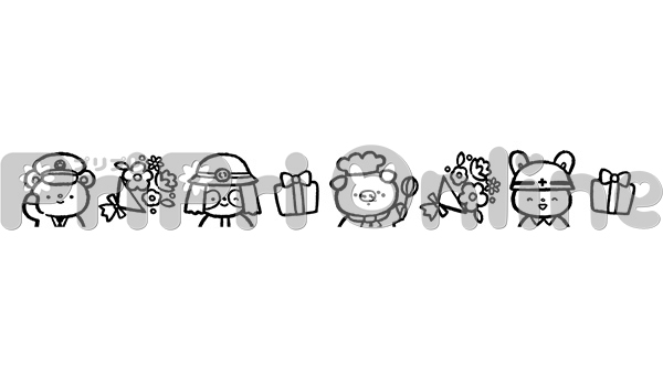 勤労感謝の日の働く動物たちの飾り罫(白黒)