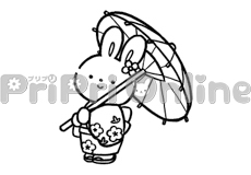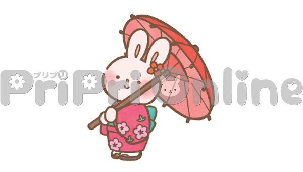 梅柄の着物を着たうさぎのイラスト