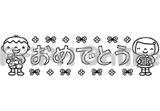 びっくり箱と「おめでとう」の飾り文字(白黒)