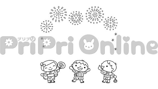 浴衣で花火大会を楽しむ子どもたちの飾り枠(白黒)