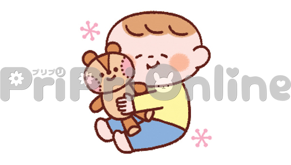 ぬいぐるみを抱く乳児のイラスト