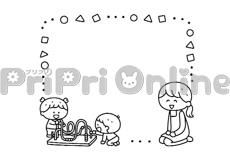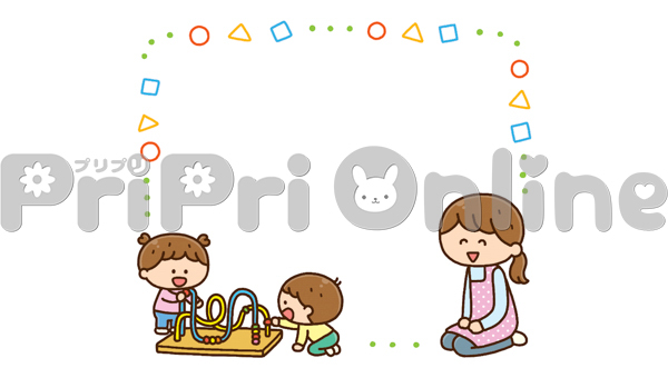 おもちゃで遊ぶ子どもと保育者の飾り枠