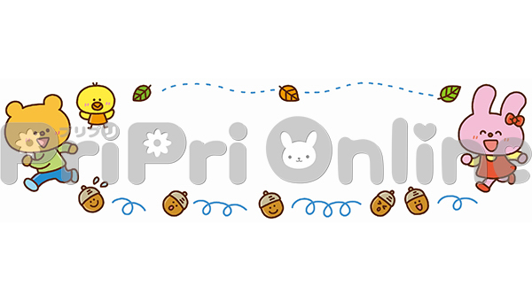 おいかけっこをする動物たちとどんぐりの飾り枠