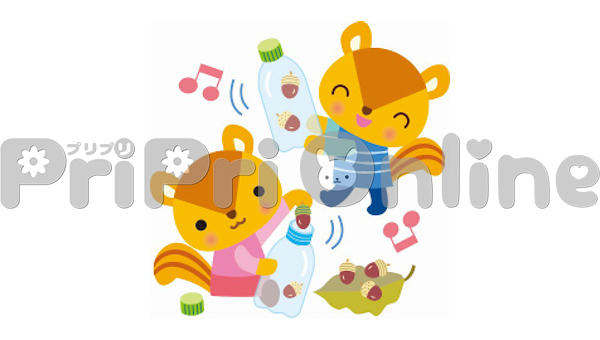 どんぐり製作で楽器を作る動物たちのイラスト