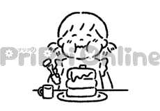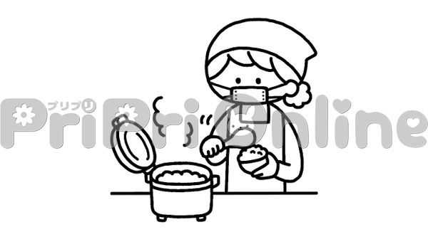 ごはんを盛り付ける人のイラスト(白黒)
