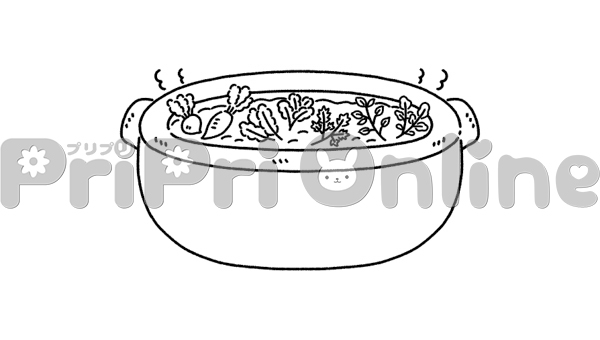 七草粥の鍋の飾り枠(白黒)