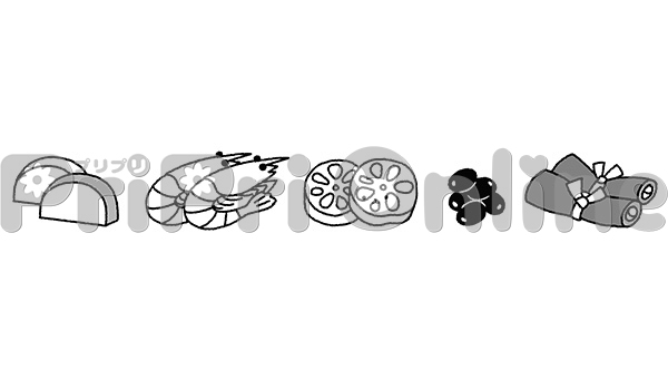 おせち料理の具材の飾り罫(白黒)