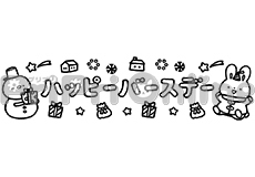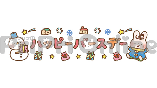 雪だるまとうさぎ「ハッピーバースデー」飾り文字