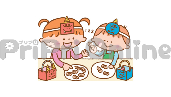 節分の豆の数を数える子どもたちのイラスト