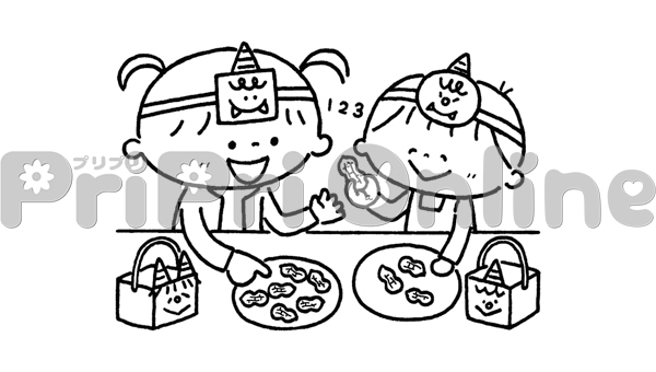 節分の豆の数を数える子どもたちのイラスト(白黒)