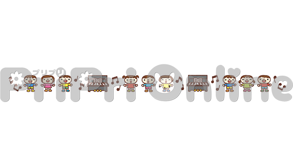 歌う子どもたちとピアノの飾り罫