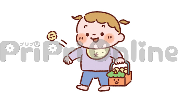 節分の豆をまく乳児のイラスト