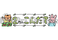 イチゴを食べる動物「2月のこんだて」飾り文字(白黒)