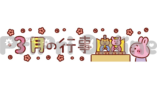 雛人形と「3月の行事」の飾り文字