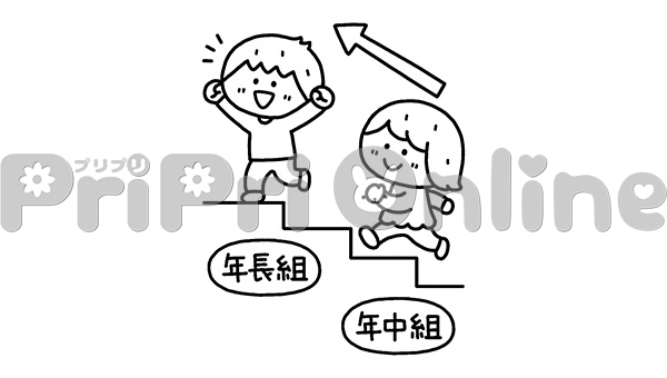 進級する子どもたちのイラスト(白黒)