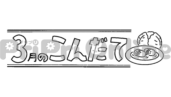 ロールキャベツと「3月のこんだて」の飾り文字(白黒)