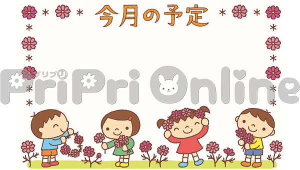 コスモスで遊ぶ子どもたちと「今月の予定」の飾り枠