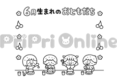 工作する子どもたちの飾り枠(白黒)
