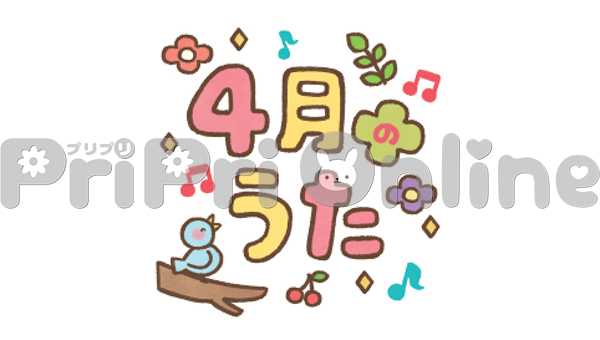 歌う小鳥と「4月のうた」の飾り文字