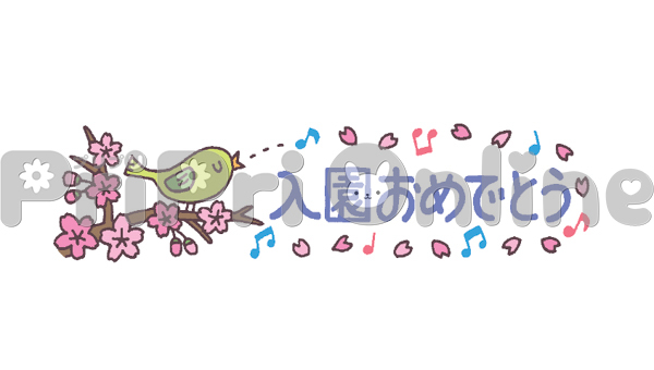 ウグイスと桜と「入園おめでとう」の飾り文字