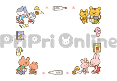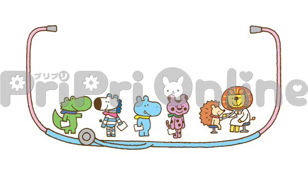 健康診断を受ける動物たちの飾り枠