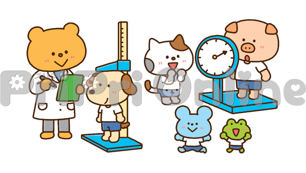 身体測定をする動物たちのイラスト