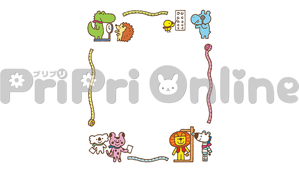 身体測定を受ける動物たちの飾り枠