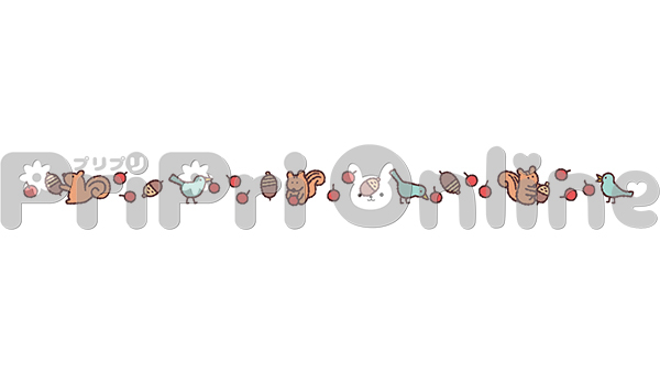 どんぐりや赤い実を拾う動物たちの飾り罫