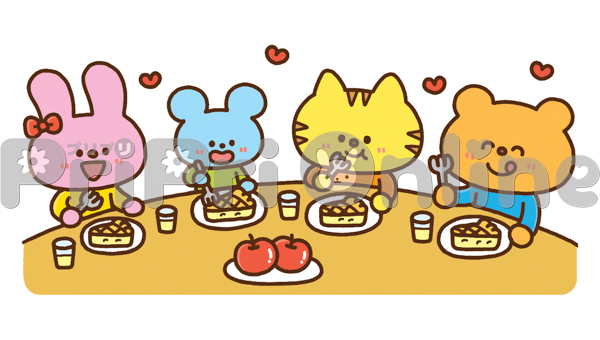 アップルパイを食べる動物たちのイラスト