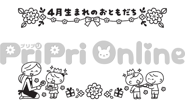 誕生日の「4月生まれのおともだち」の飾り枠(白黒)
