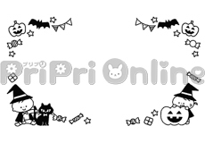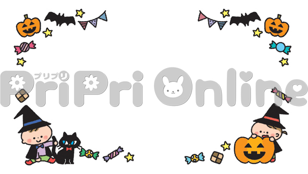 ハロウィン装飾と仮装した子どもたちの飾り枠