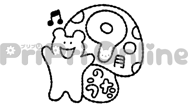 歌うクマと「9月のうた」の飾り文字(白黒)