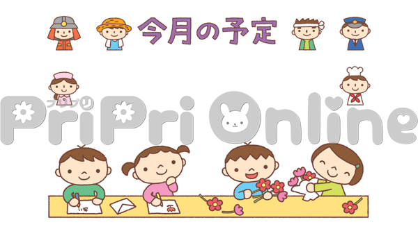 勤労感謝の日のプレゼントを作る子どもたちと「今月の予定」の飾り枠