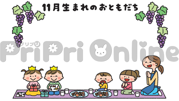 誕生日を祝う子どもたちと「11月生まれのおともだち」の飾り枠