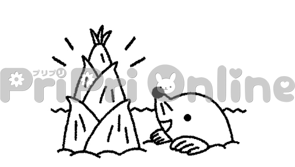 タケノコとモグラのイラスト(白黒)