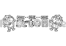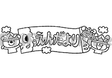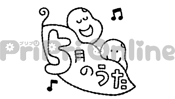 歌うそら豆と「5月のうた」の飾り文字(白黒)