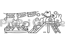 折り紙の兜をかぶった動物たちと「えんだより」の飾り文字(白黒)