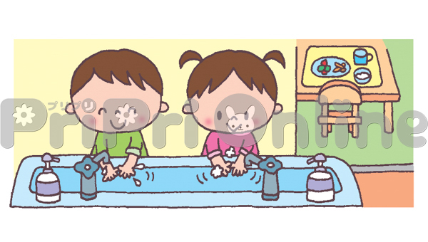 食事前に手洗いをする子どもたちのイラスト